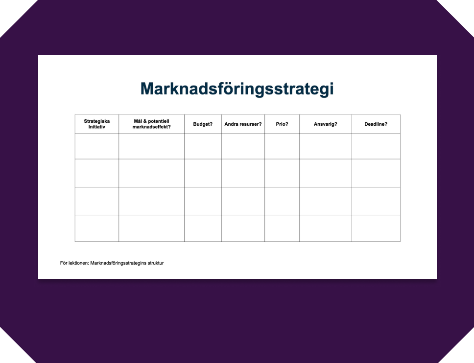 Få en tydlig mall för att förtydliga er marknadsföringsstrategi på en slide